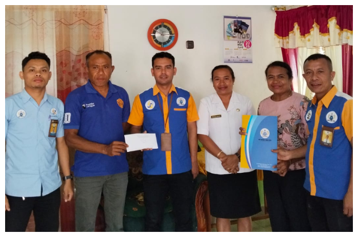 Penyerahan santunan dilakukan manajemen Kantor Cabang Utama TTS, yakni staf AO, Kus Toh. staf LO Maxi Oematan, staf admin, Amon Taneo, dan Ketua Pengelola Kelompok Sahabat Obor Mas Tobu, Fery Yane Nomeni.