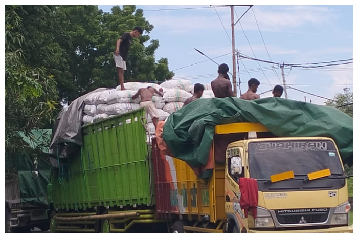 Patroli Dishub Sikka HalauTruk Besar Bongkar Muat di Jalan